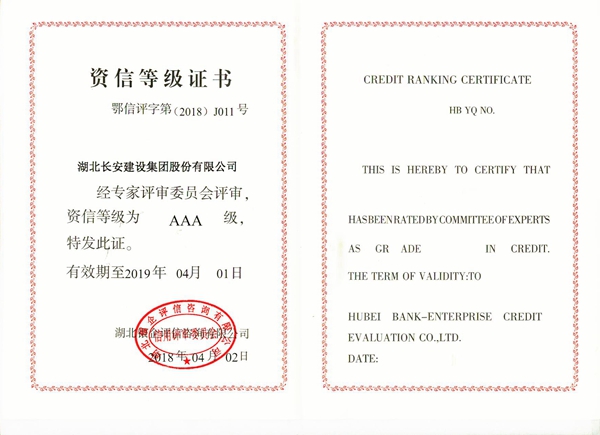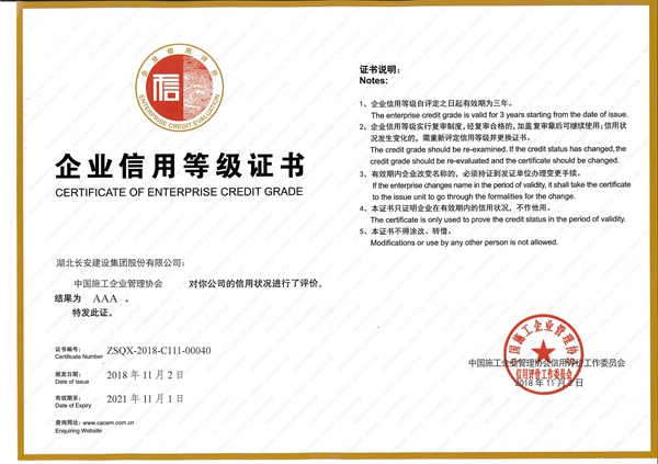2018年度工程建設(shè)企業(yè)信用等級(jí)AAA(獎(jiǎng)牌)