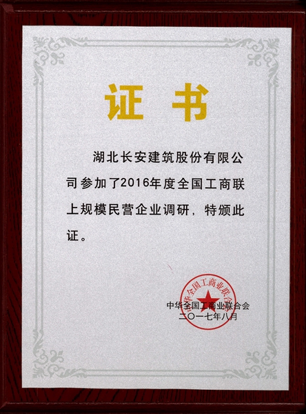 參加2016年度全國(guó)工商聯(lián)上規(guī)模民營(yíng)企業(yè)調(diào)研頒證