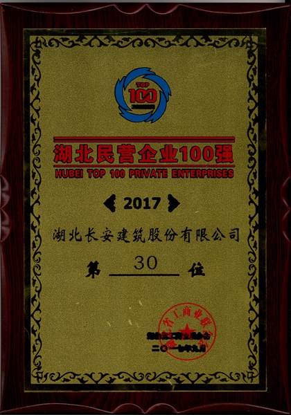 湖北民營(yíng)企業(yè)100強(qiáng)(第30位)2017