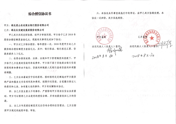 湖北英山農(nóng)村商業(yè)銀行綜合授信(壹拾億)協(xié)議2018