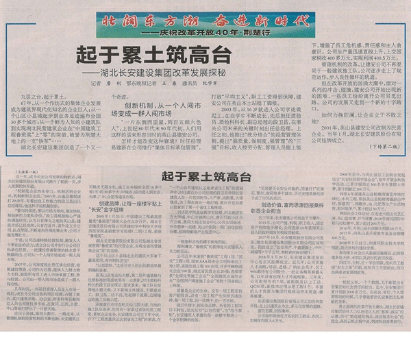 湖北長(zhǎng)安建設(shè)集團(tuán)改革發(fā)展探秘(黃岡日?qǐng)?bào)20181015)