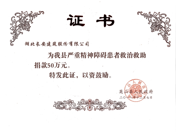 為縣嚴(yán)重精神障礙患者救治助捐款50萬(wàn)元(2018)