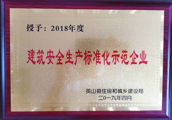 2018年度建筑安全生產標準化示范企業(yè)(英山)