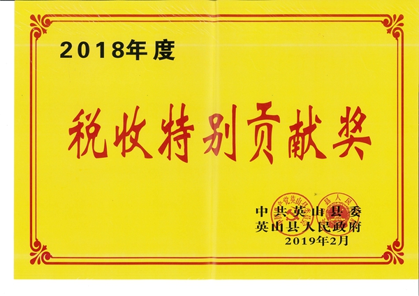 2018年度稅收特別貢獻獎