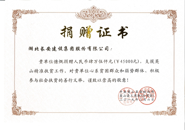 捐贈人民幣肆萬伍仟元支援英山精準扶貧工作2019