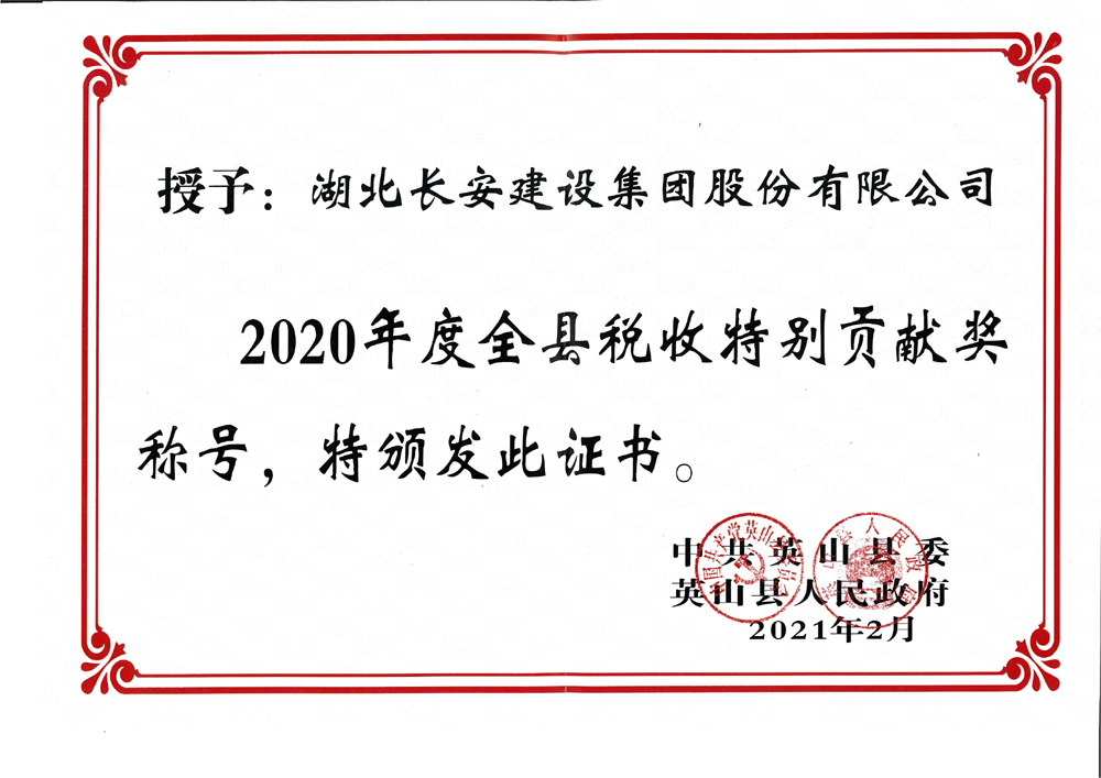 2020年度英山縣稅收特別貢獻(xiàn)獎