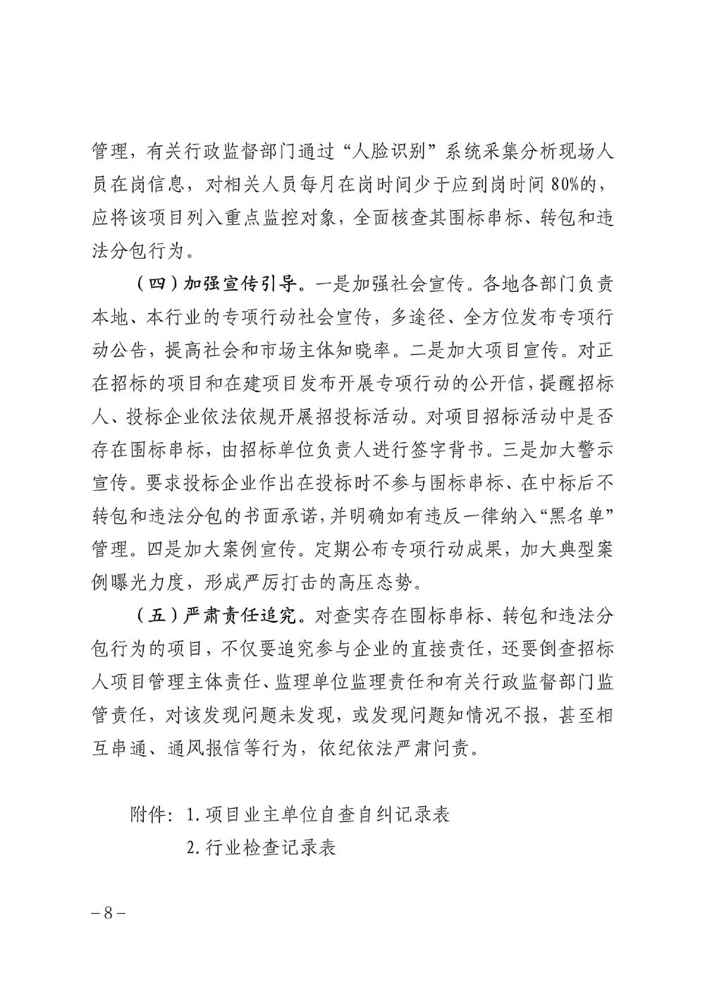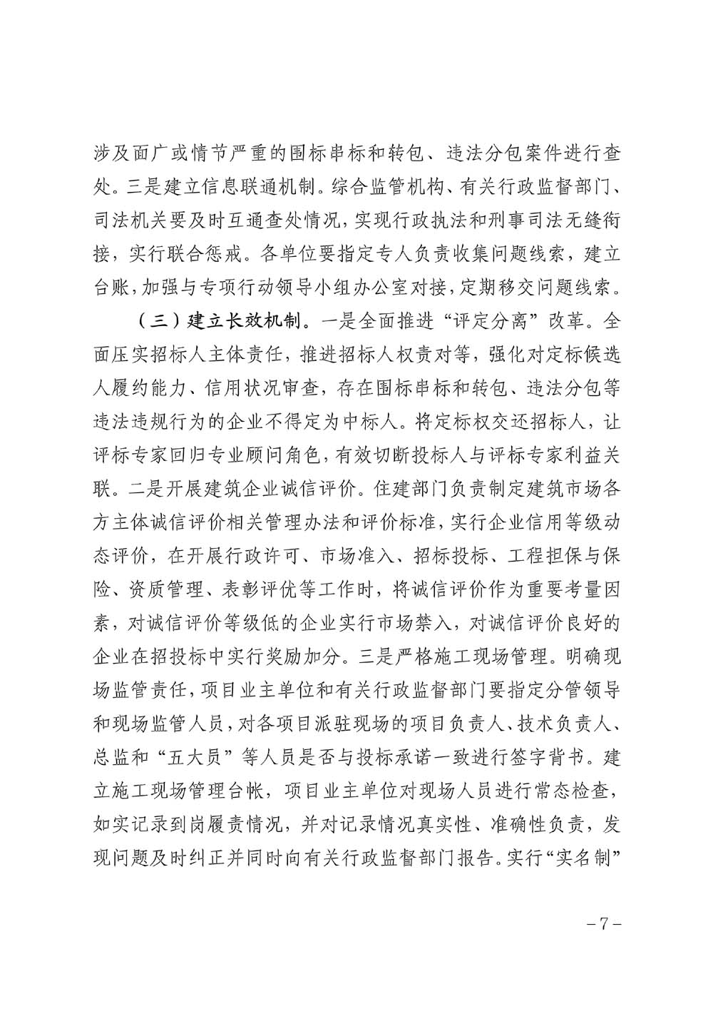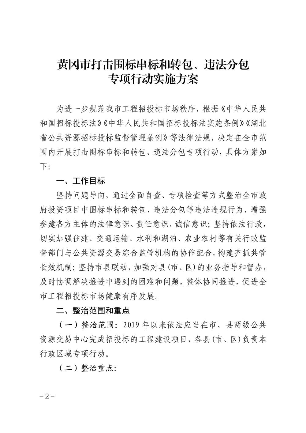 關于打擊圍標串標和轉包、違法分包專項行動的實施方案