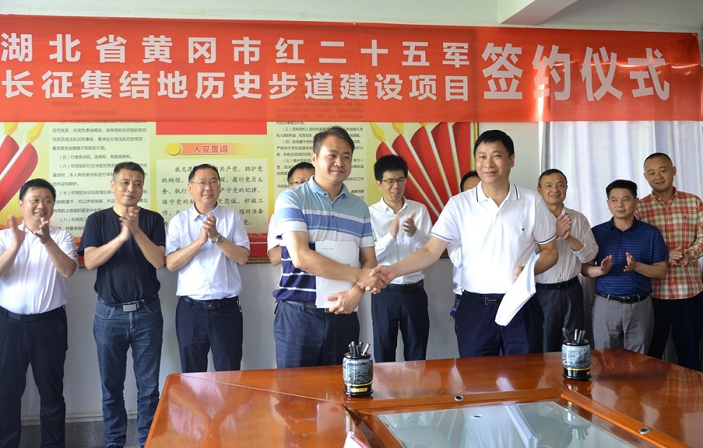 簽約儀式上,祝曙洺首先對集團中標表示祝賀,并簡要介紹了湖北省黃岡市紅二十五軍長征集結(jié)地歷史步道建設項目既是重大政治任務,又是重大歷史機遇,他要求集團公司要嚴謹規(guī)范施工,在保證施工質(zhì)量的前提下,確保施工安全,確保工程順利完工,把這一造福當代、利在千秋的民心工程高標準建成建好。