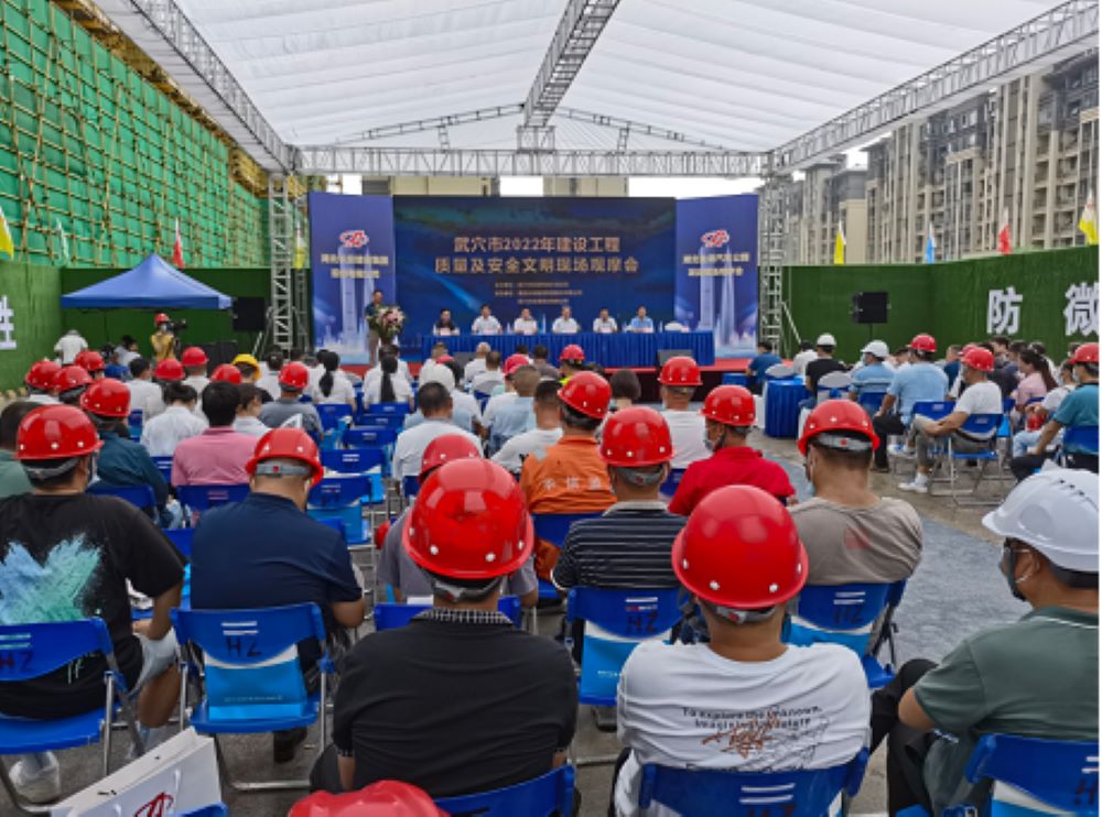 中華建設(shè)網(wǎng)訊(通訊員 李智猛)為進(jìn)一步提升武穴市的建筑工程質(zhì)量及安全文明施工水平,7月7日上午,武穴市2022年建設(shè)工程質(zhì)量及安全文明現(xiàn)場(chǎng)觀摩會(huì)在湖北金港汽車公園項(xiàng)目現(xiàn)場(chǎng)召開。黃岡市住建局三級(jí)調(diào)研員王漢良、武穴市政府副市長(zhǎng)付海強(qiáng)出席會(huì)議,武穴市住建局局長(zhǎng)王衛(wèi)紅主持會(huì)議,市應(yīng)急局等單位負(fù)責(zé)人及全市各建設(shè)、施工、監(jiān)理企業(yè)相關(guān)負(fù)責(zé)人共150余人參加會(huì)議并進(jìn)行觀摩交流。