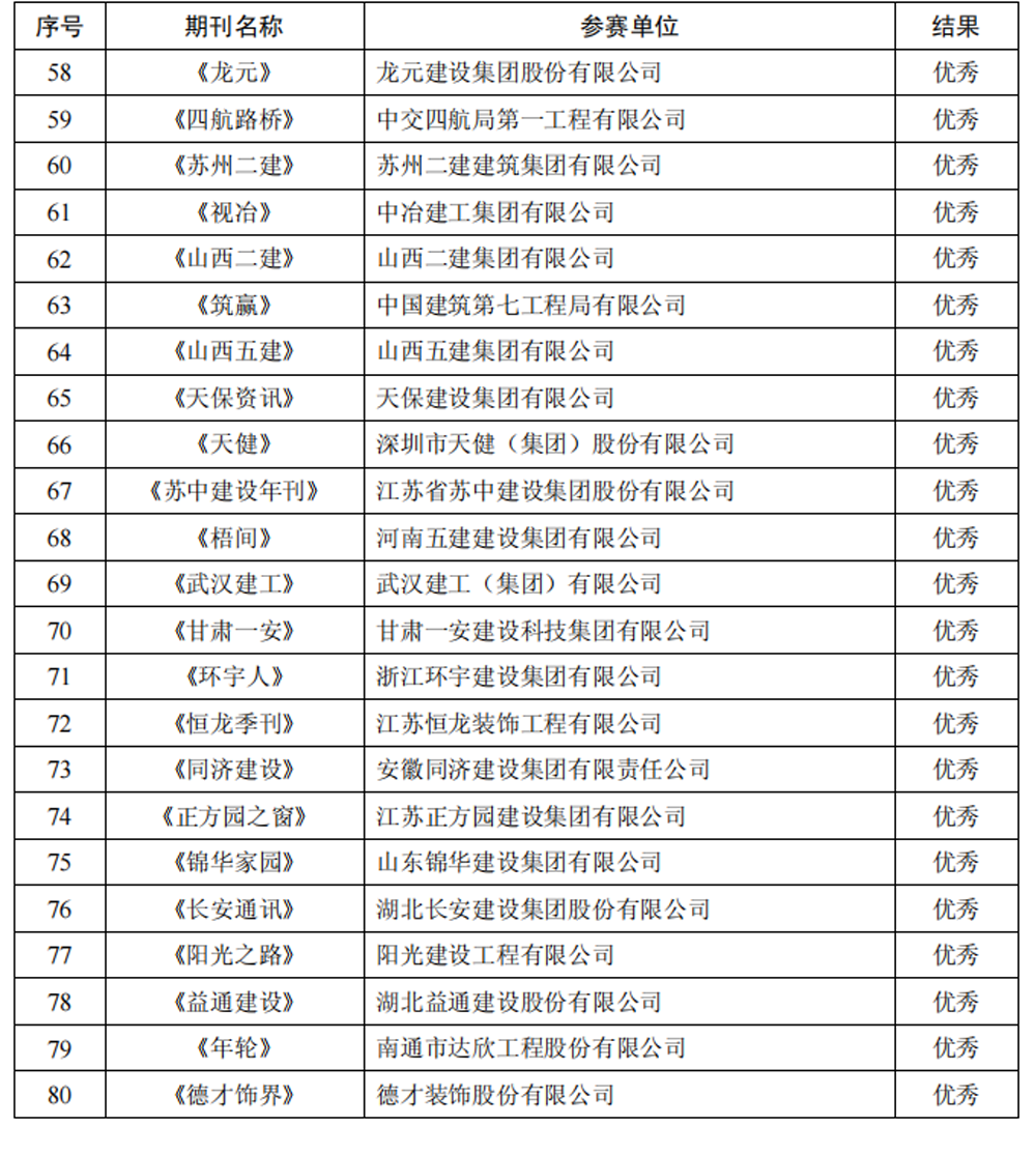 8月4日,中國施工企業(yè)管理協(xié)會(huì)發(fā)布《工程建設(shè)企業(yè)文化建設(shè)最佳案例和優(yōu)秀案例的通知》《2022年工程建設(shè)企業(yè)文化作品競賽結(jié)果的通知》,評選出工程建設(shè)企業(yè)文化建設(shè)最佳案例49個(gè)、優(yōu)秀案例67個(gè)和建設(shè)企業(yè)期刊80(家)種(其中精品42種,優(yōu)秀38種)。湖北長安建設(shè)集團(tuán)股份有限公司(簡稱長安建設(shè)集團(tuán))《紅色文化與企業(yè)文化協(xié)同發(fā)力,黨建引領(lǐng)企業(yè)高質(zhì)量發(fā)展》入選企業(yè)文化優(yōu)秀案例、《長安通訊》被評為優(yōu)秀期刊。