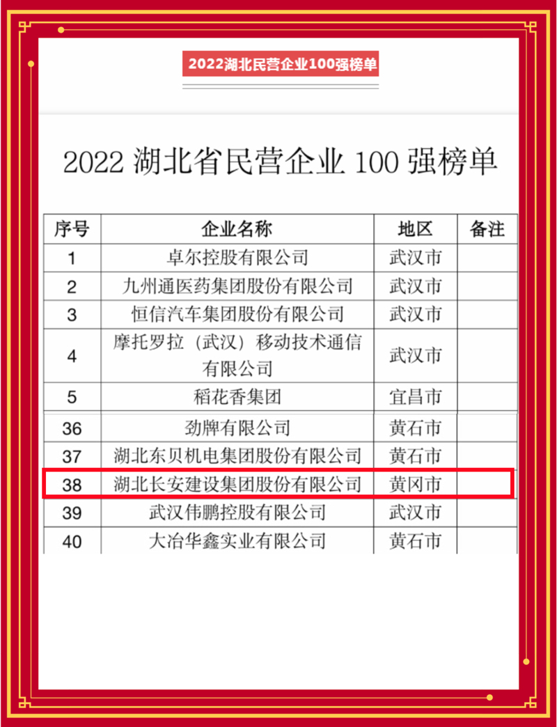 11月3日,湖北省人民政府新聞辦召開新聞發(fā)布會,2022年湖北民營企業(yè)100強榜單正式發(fā)布。集團公司穩(wěn)居榜單,位列第38名,這是集團公司第9次獲此榮譽。