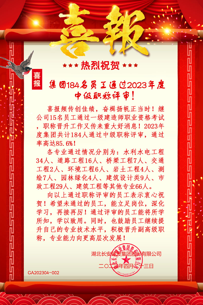 集團184名員工通過2023年度中級職稱評審