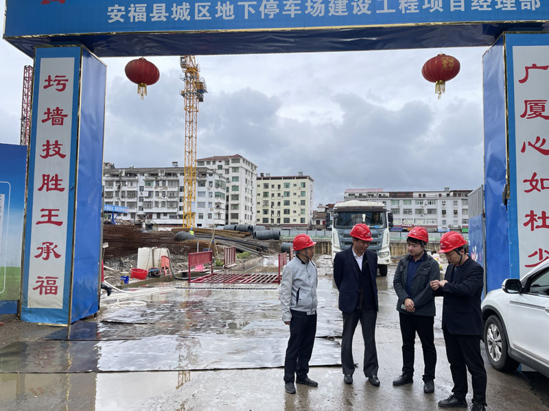 4月25日上午,集團(tuán)董事長段衛(wèi)昌不顧舟車勞頓,從英山赴江西安??h城區(qū)地下停車場建設(shè)工程項目部檢查指導(dǎo)工作。