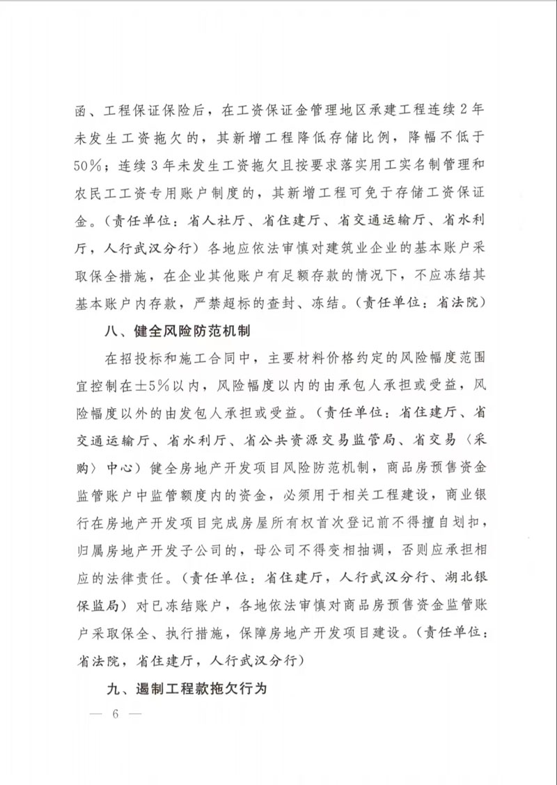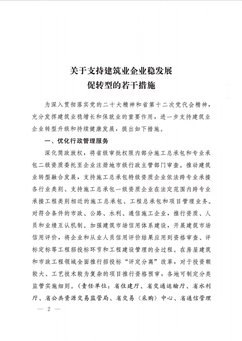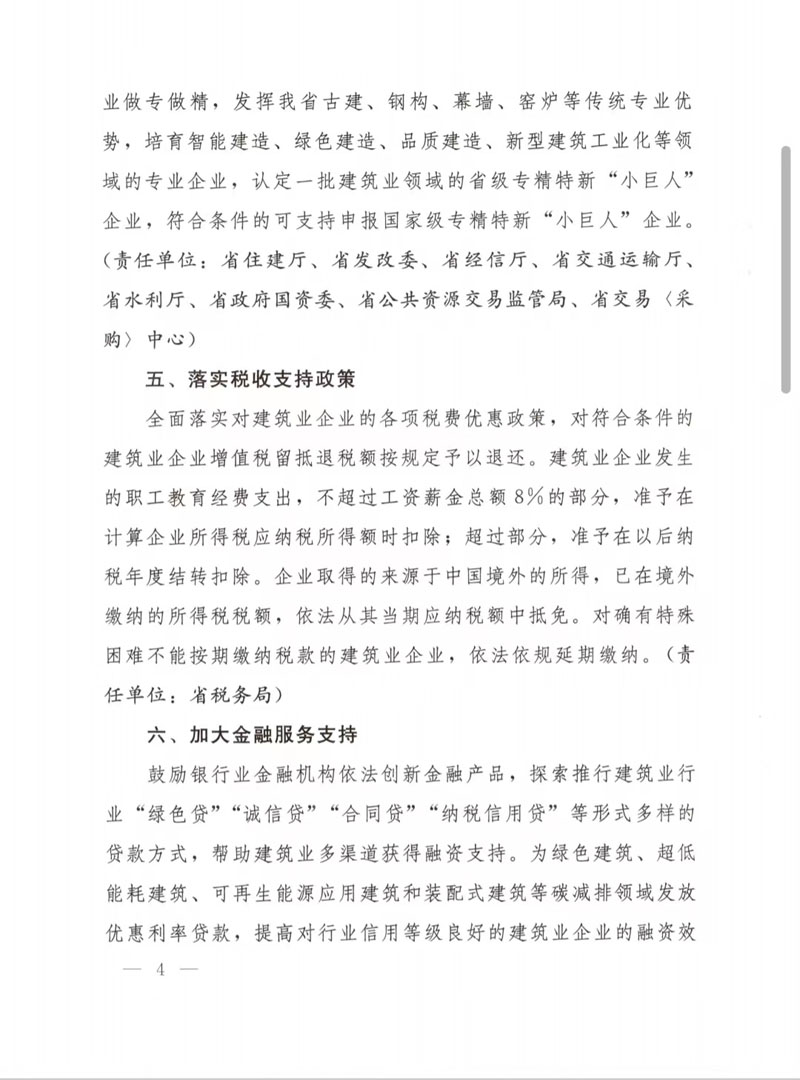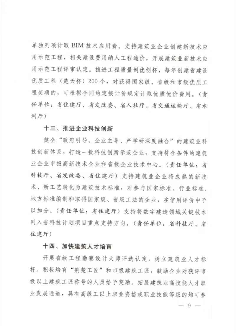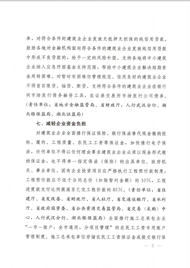 湖北省人民政府辦公廳關于印發(fā)支持建筑業(yè)企業(yè)穩(wěn)發(fā)展促轉型若干措施的通知