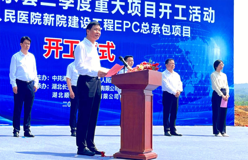 5月18日上午10時許,浠水縣2023年第二季度重大項目集中開工儀式在浠水縣人民醫(yī)院新院建設(shè)工程(EPC)項目舉行。浠水縣政協(xié)主席楊嘉國、縣衛(wèi)健局局長周保先、縣城發(fā)集團總經(jīng)理鄭宏林、縣人民醫(yī)院黨委書記徐飛勇、縣人民醫(yī)院院長陳春喜、清泉鎮(zhèn)鎮(zhèn)長安智以及各鄉(xiāng)鎮(zhèn)、各單位的有關(guān)負(fù)責(zé)人出席,浠水縣副縣長徐敏主持。浠水縣人民醫(yī)院新院建設(shè)工程項目施工方--湖北長安建設(shè)集團董事長段衛(wèi)昌、英山分公司經(jīng)理付賢、項目負(fù)責(zé)人侯華南等參加活動。