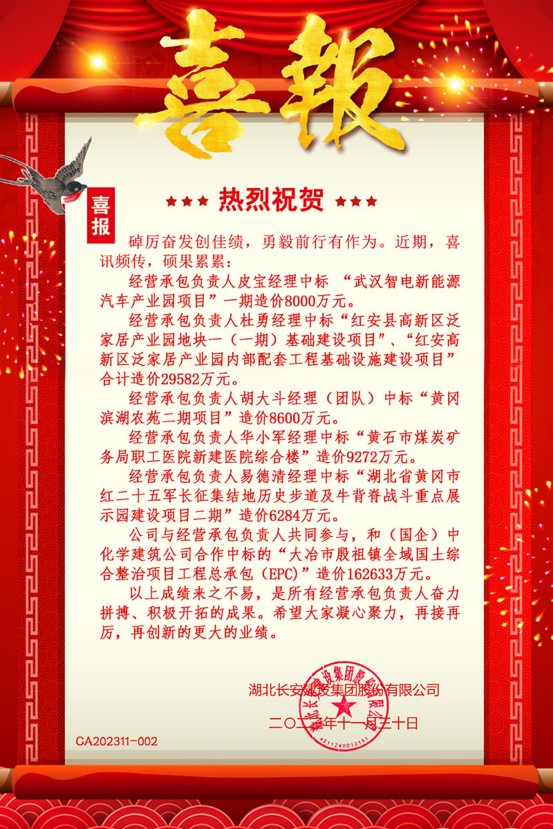 集團(tuán)公司中標(biāo)7項(xiàng)目,總造價(jià)超22.4億元