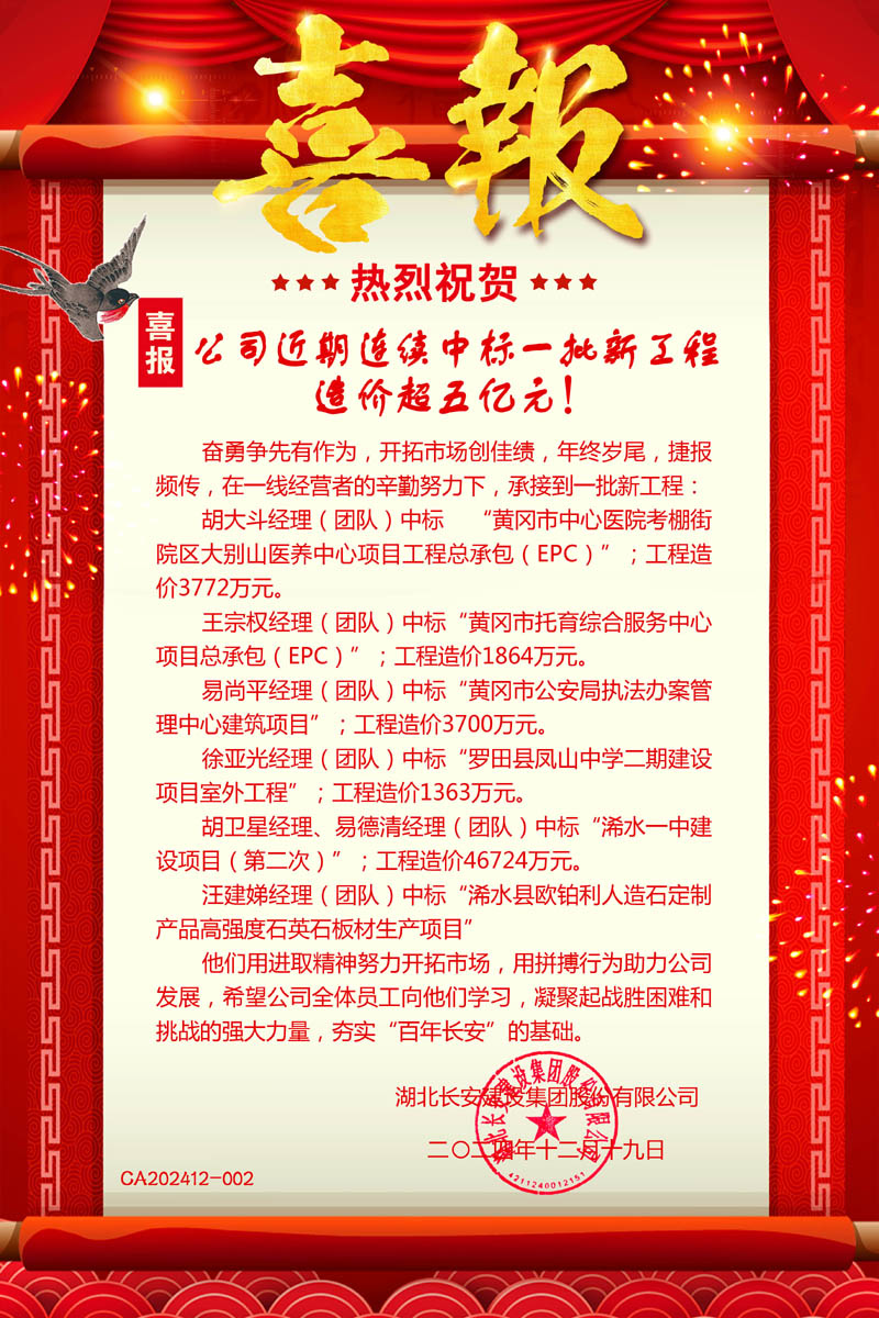集團(tuán)公司第四季度中標(biāo)一批新工程總造價(jià)超5億元