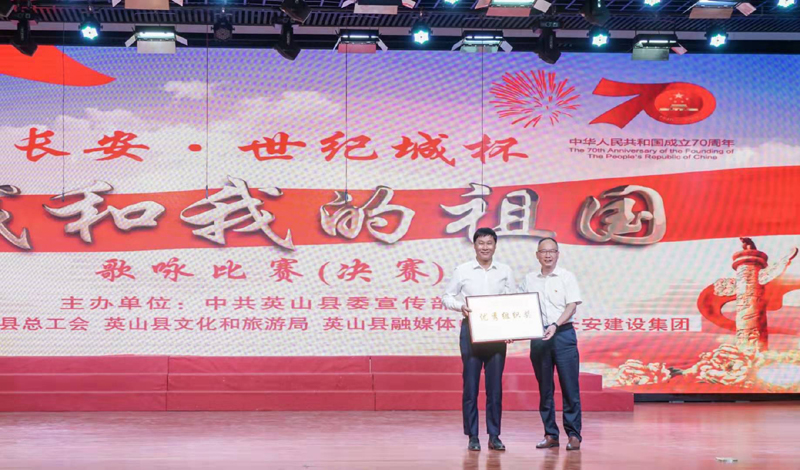 在集團(tuán)高管領(lǐng)導(dǎo)的關(guān)懷和重視下,在各位員工加班加點(diǎn)的勤學(xué)苦練下,集團(tuán)大合唱《長(zhǎng)江之歌》在全縣22支隊(duì)伍中,脫穎而出,喜獲佳績(jī)。英山縣委常委、宣傳部長(zhǎng)盧峰親自為集團(tuán)董事長(zhǎng)段衛(wèi)昌頒發(fā)“優(yōu)秀組織獎(jiǎng)”。
