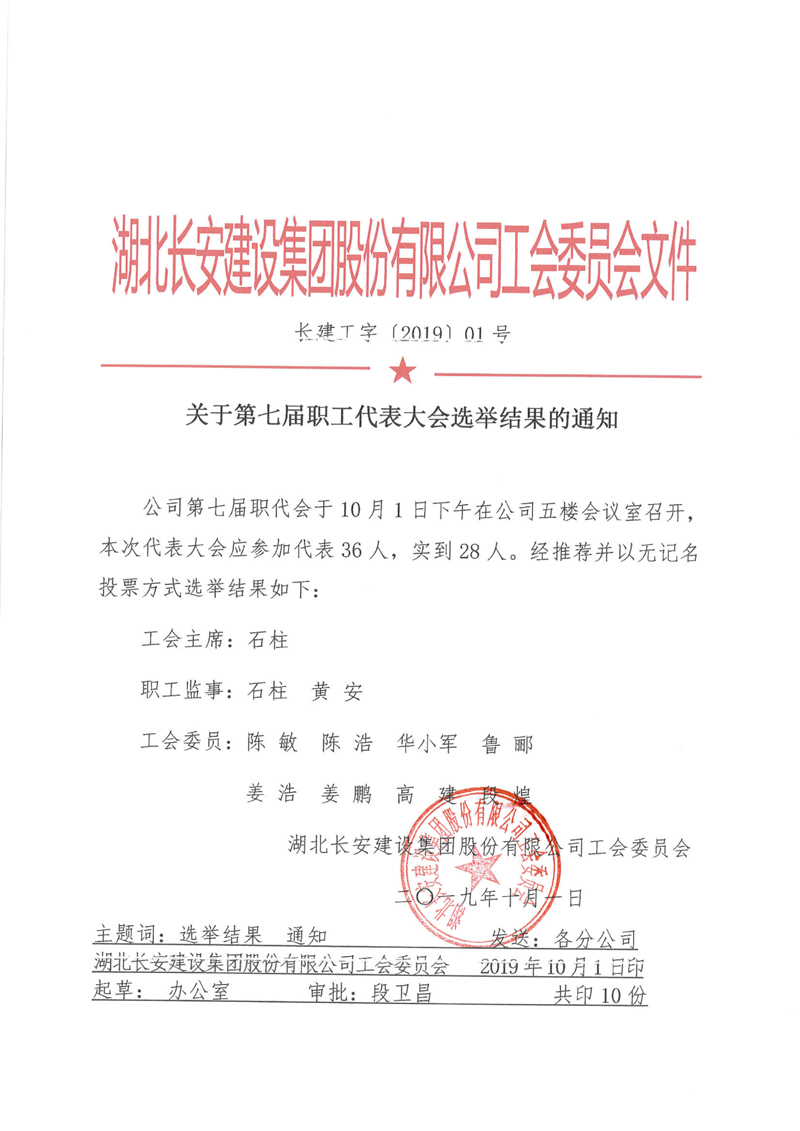 關(guān)于第七屆職工代表大會(huì)選舉結(jié)果的通告