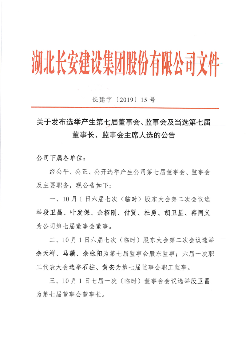 集團公司第七屆董事會、監(jiān)事會及董事長、監(jiān)事會主席人選的公告