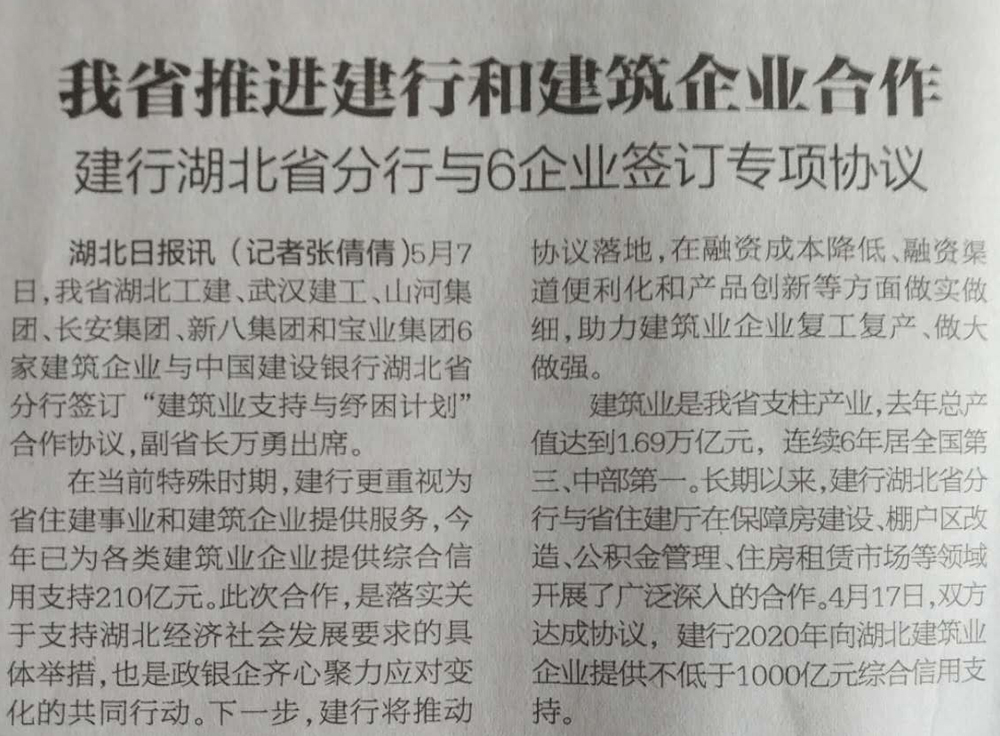 集團董事長段衛(wèi)昌參加湖北省建筑業(yè)銀企合作協(xié)議簽約儀式