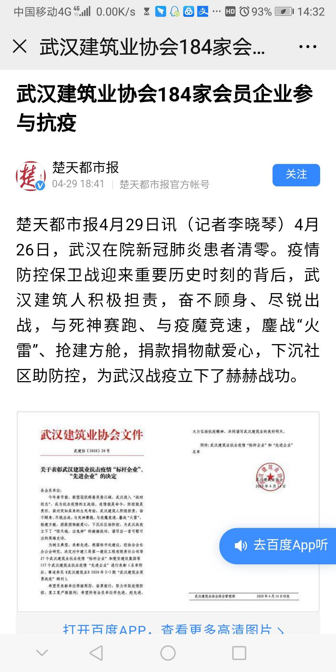 集團(tuán)公司被武漢建筑業(yè)協(xié)會(huì)授予“疫情防控優(yōu)秀企業(yè)”