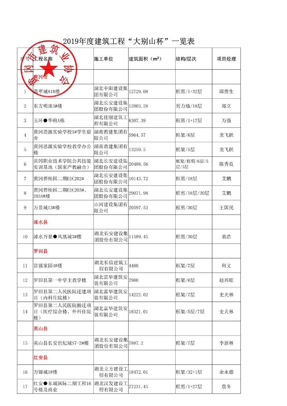 集團東方明珠5#樓等6個工程獲黃岡市建筑工程“大別山杯”獎