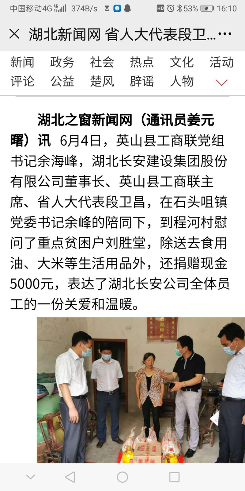 集團(tuán)黨委書記、董事長段衛(wèi)昌給貧困戶捐款5000元助力脫貧攻堅