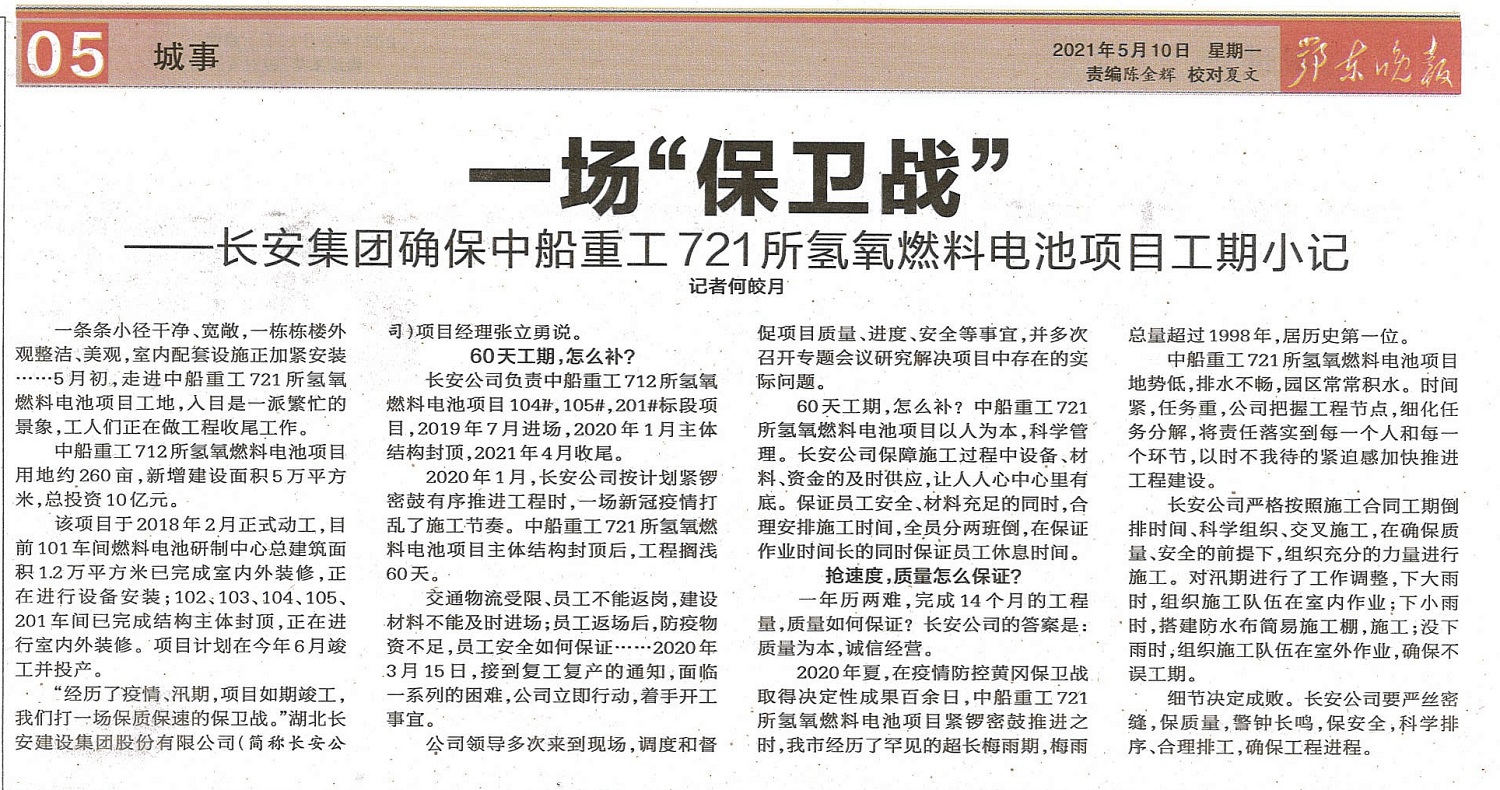 鄂東晚報(bào)報(bào)道公司中船重工721所氫氧燃料電池項(xiàng)目施工