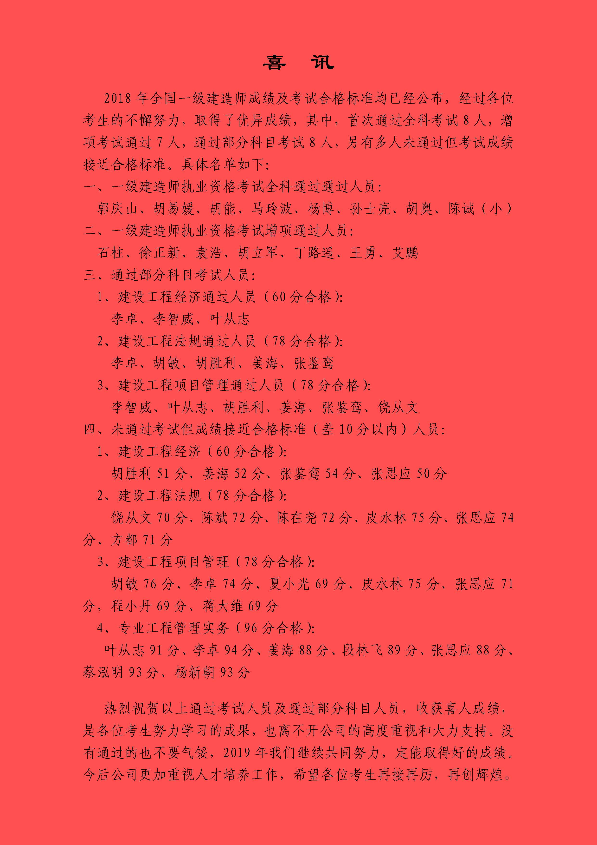 2018年度通過一級(jí)建造師員工獲得公司獎(jiǎng)勵(lì)
