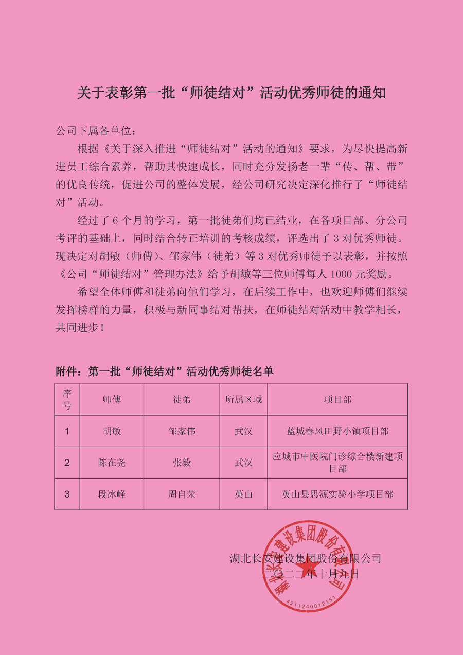 公司第一批“師徒結(jié)對(duì)”活動(dòng)優(yōu)秀師徒名單